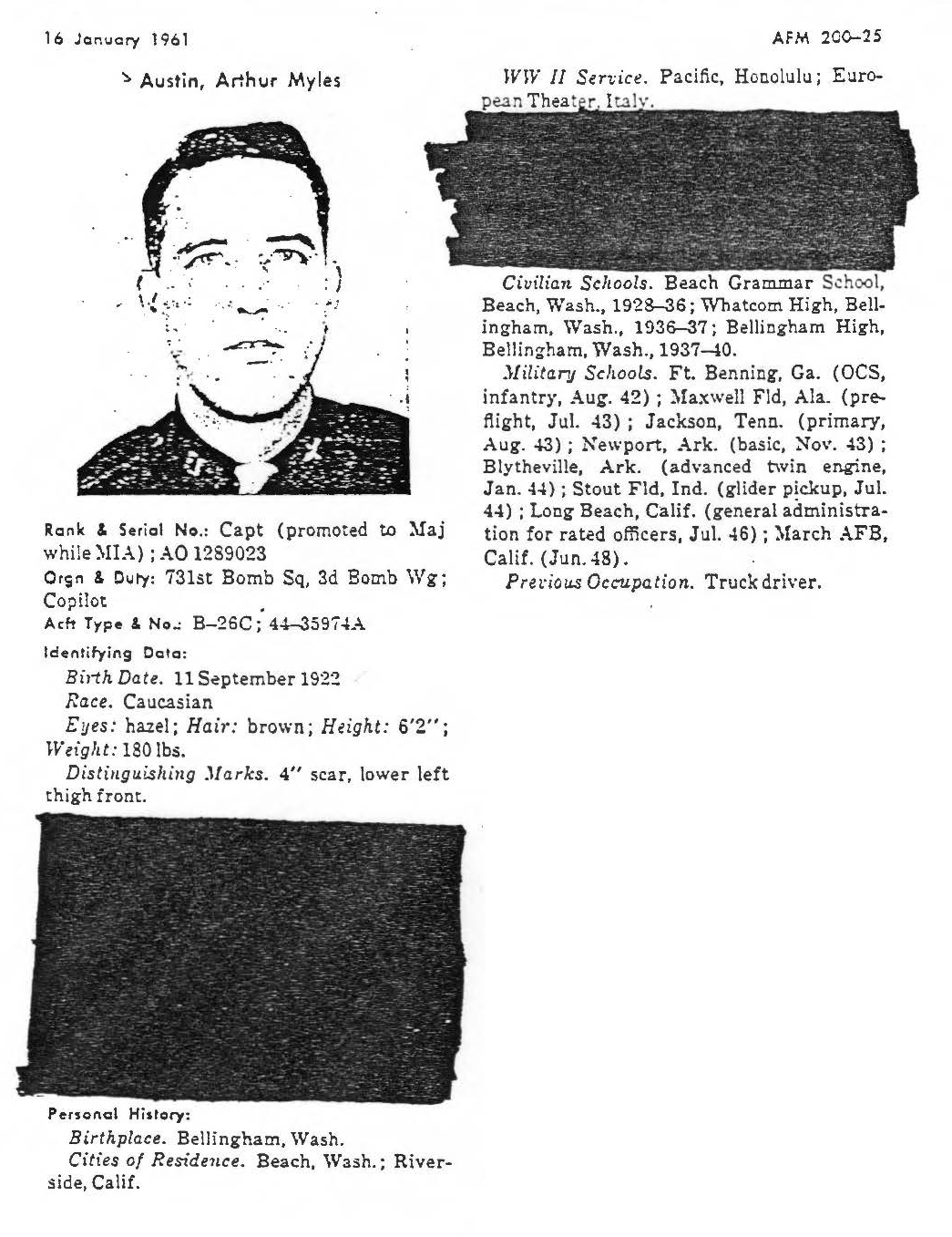 returning POWs mentioned contact with Major Austin, nor was he