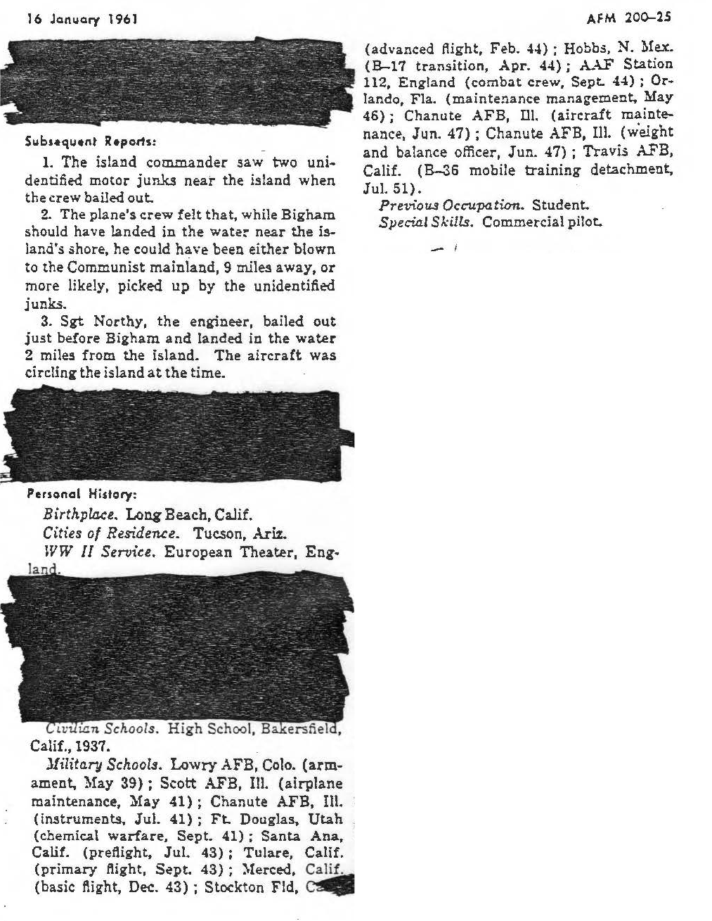 Data Sources - Air Force Manual No. 200-25A, Department of the Air Force, Washington, October 16, 1961 page 1. Sanitized copy. National Archives KOREAN Conflict Casualty File (KCCF) 1950-1954. |
