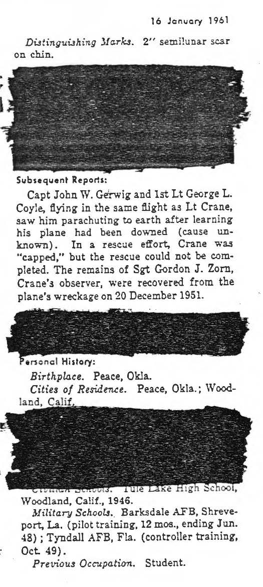 identified the remains of First Lieutenant Alvin Earl Crane Jr., missing