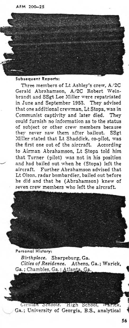 radio propaganda broadcasts, and letters written home by captured men. The "revised" list was narrowed down in august of 1961 to 389 men, and
