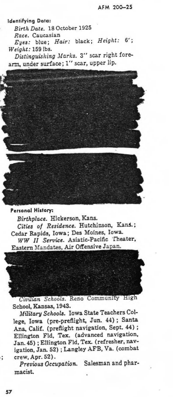 Data Sources - Air Force Manual No. 200-25A, Department of the Air Force, Washington, October 16, 1961 page 1. Sanitized copy. National Archives KOREAN Conflict Casualty File (KCCF) 1950-1954.