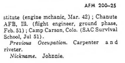 Data Sources - Air Force Manual No. 200-25A, Department of the Air Force, Washington, October 16, 1961 page 1. Sanitized copy. National Archives KOREAN Conflict Casualty File (KCCF) 1950-1954.