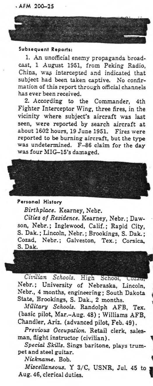 Data Sources - Air Force Manual No. 200-25A, Department of the Air Force, Washington, October 16, 1961 page 1. Sanitized copy. National Archives KOREAN Conflict Casualty File (KCCF) 1950-1954. _________________________________________________________________ Complete copy avail through the P.O.W. NETWORK