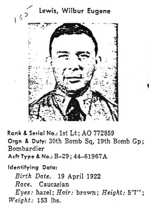 ![]() 1st Lt WILBUR EUGENE LEWIS
