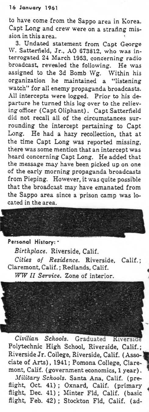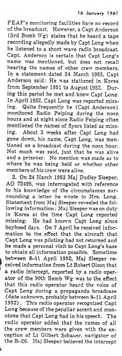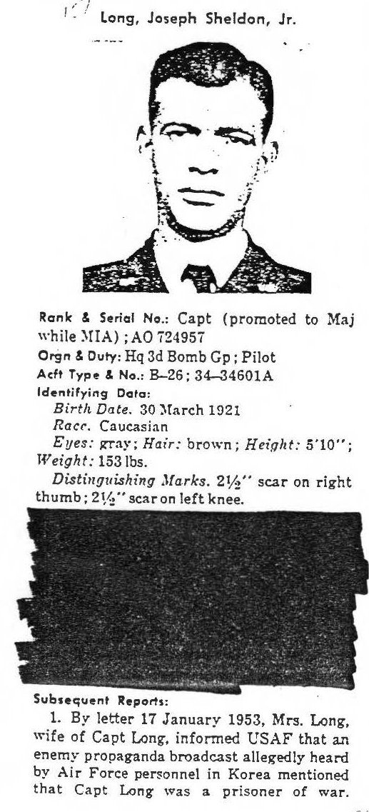 information. (FEBRUARY 1992) Joseph Long is listed on the "HONOR ROLL OF FORGOTTEN AMERICANS" yet is noted as having died "while missing" by the National Archive. |