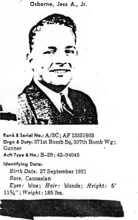 information. (FEBRUARY 1992) Jess Osborne is listed on the "HONOR ROLL OF FORGOTTEN AMERICANS" yet is listed as having "died while missing" by the National Archive. |