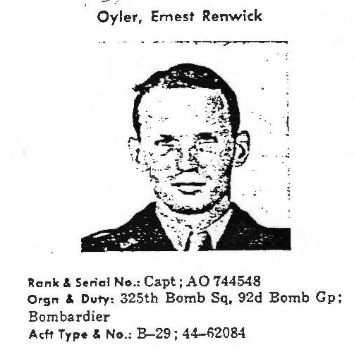 information. (FEBRUARY 1992) Ernest Oyler is listed on the "HONOR ROLL OF FORGOTTEN AMERICANS" yet is noted as having died "while missing" by the National Archive. |