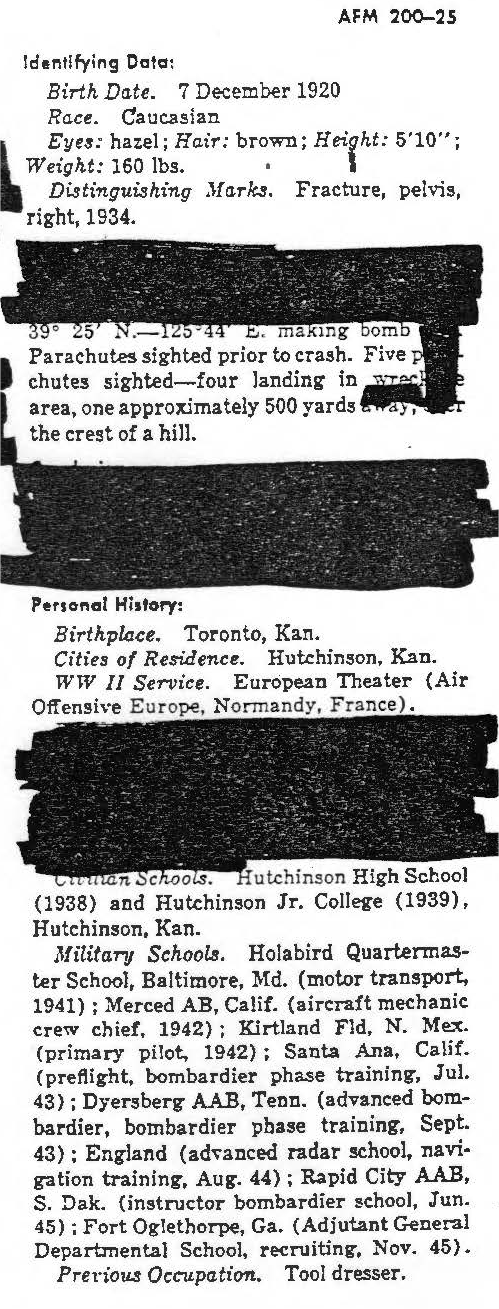 Data Sources - Air Force Manual No. 200-25A, Department of the Air Force, Washington, October 16, 1961 page 1. Sanitized copy. National Archives KOREAN Conflict Casualty File (KCCF) 1950-1954.