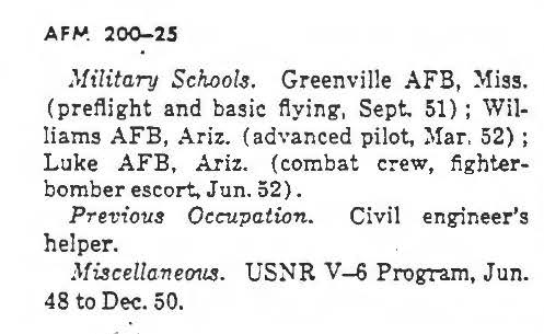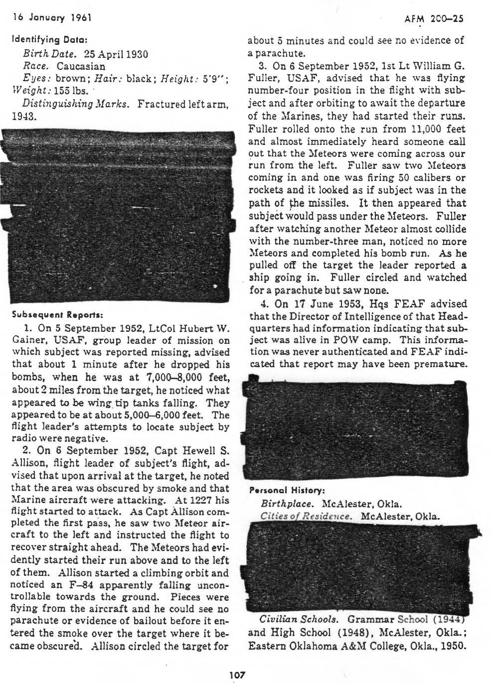 Data Sources - Air Force Manual No. 200-25A, Department of the Air Force, Washington, October 16, 1961 page 1. Sanitized copy. National Archives KOREAN Conflict Casualty File (KCCF) 1950-1954.