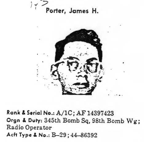 information. (FEBRUARY 1992) James Porter is listed on the "HONOR ROLL OF FORGOTTEN AMERICANS" yet is noted as having died "while missing" by the National Archive. |
