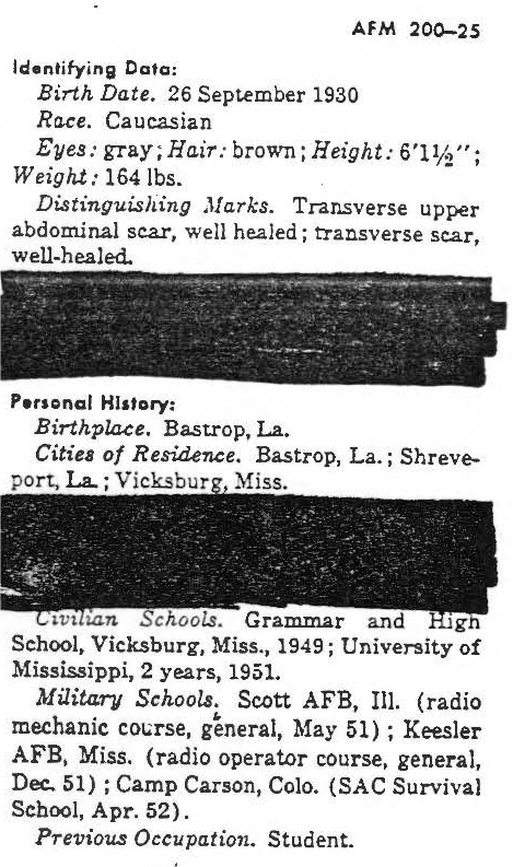 Data Sources - Air Force Manual No. 200-25A, Department of the Air Force, Washington, October 16, 1961 page 1. Sanitized copy. National Archives KOREAN Conflict Casualty File (KCCF) 1950-1954.