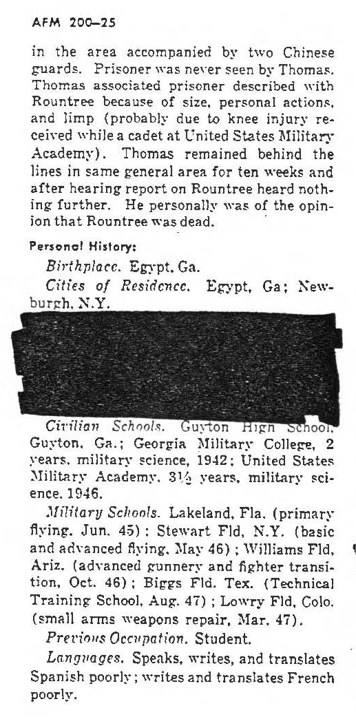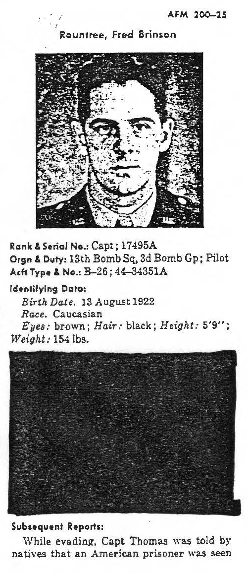 Fred Rountree is listed on the "HONOR ROLL OF FORGOTTEN AMERICANS" yet is noted as having died "while missing" by the National Archive.
