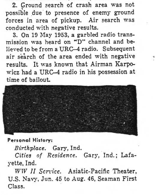 Further information has been compiled by the P.O.W. Network from the Hawaii POW/MIA