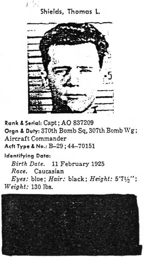 information. (FEBRUARY 1992) Thomas Shields is listed on the "HONOR ROLL OF FORGOTTEN AMERICANS" yet is noted as having died "while missing" by the National Archive. |