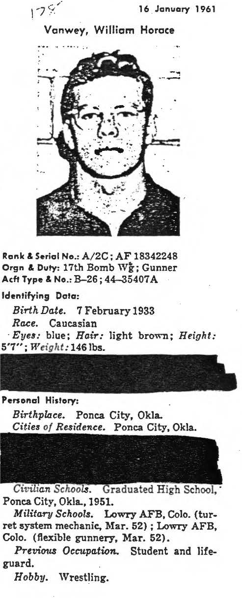 information. (FEBRUARY 1992) William Vanwey is listed on the "HONOR ROLL OF FORGOTTEN AMERICANS" yet is noted as having died "while missing" by the National Archive. |