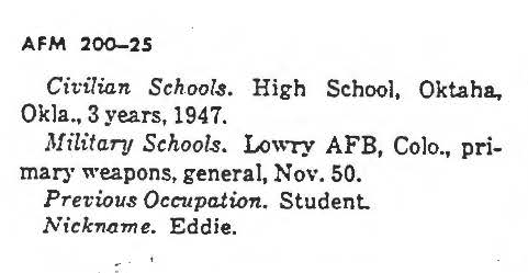 Data Sources - Air Force Manual No. 200-25A, Department of the Air Force, Washington, October 16, 1961 page 1. Sanitized copy. National Archives KOREAN Conflict Casualty File (KCCF) 1950-1954.