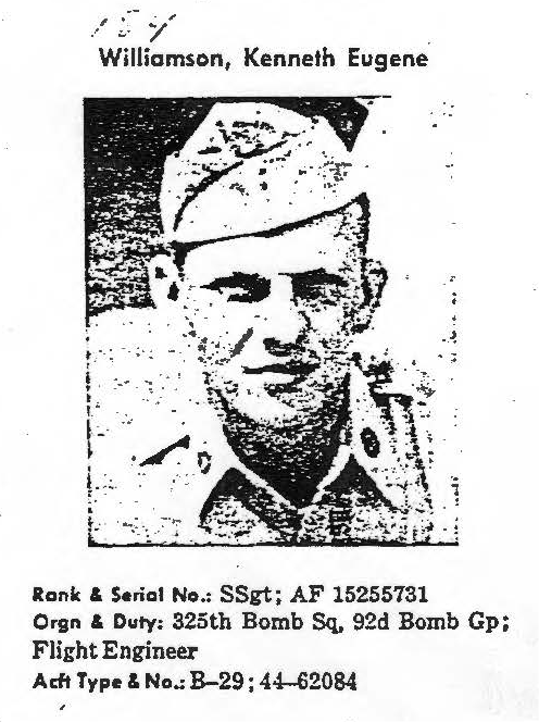 information. (FEBRUARY 1992) Kenneth Williamson is listed on the "HONOR ROLL OF FORGOTTEN AMERICANS" yet is noted as having died "while missing" by the National Archive. |