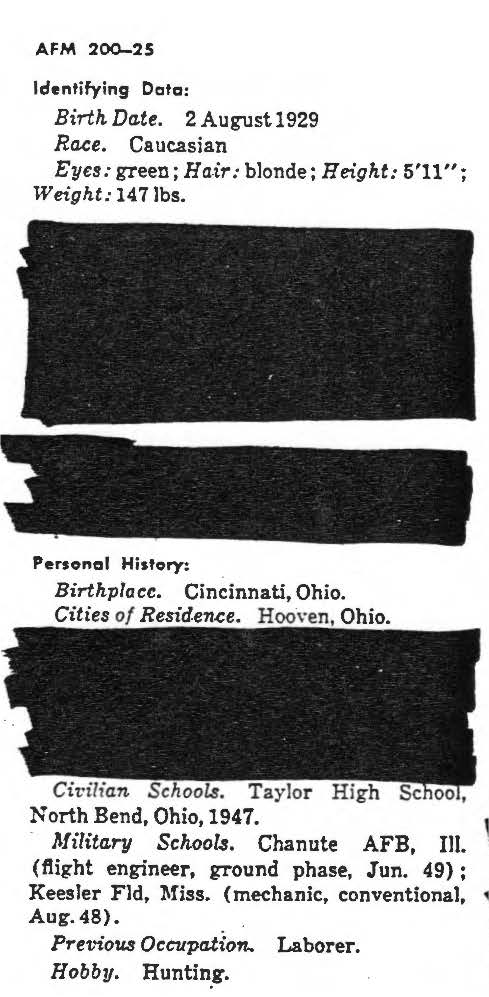 Data Sources - Air Force Manual No. 200-25A, Department of the Air Force, Washington, October 16, 1961 page 1. Sanitized copy. National Archives KOREAN Conflict Casualty File (KCCF) 1950-1954.