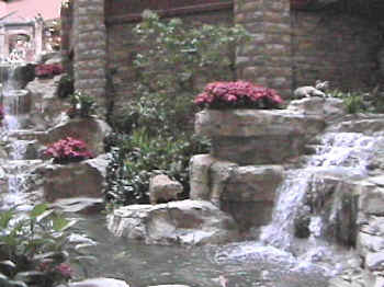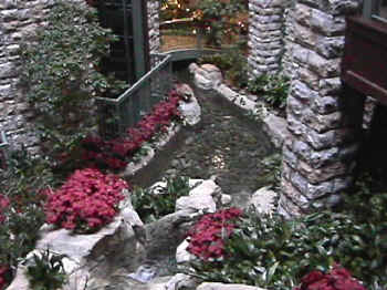 The streams floor through the lower levels, with fish, flowers and more. Poinsettias abound in red, white and gold trimmed! |