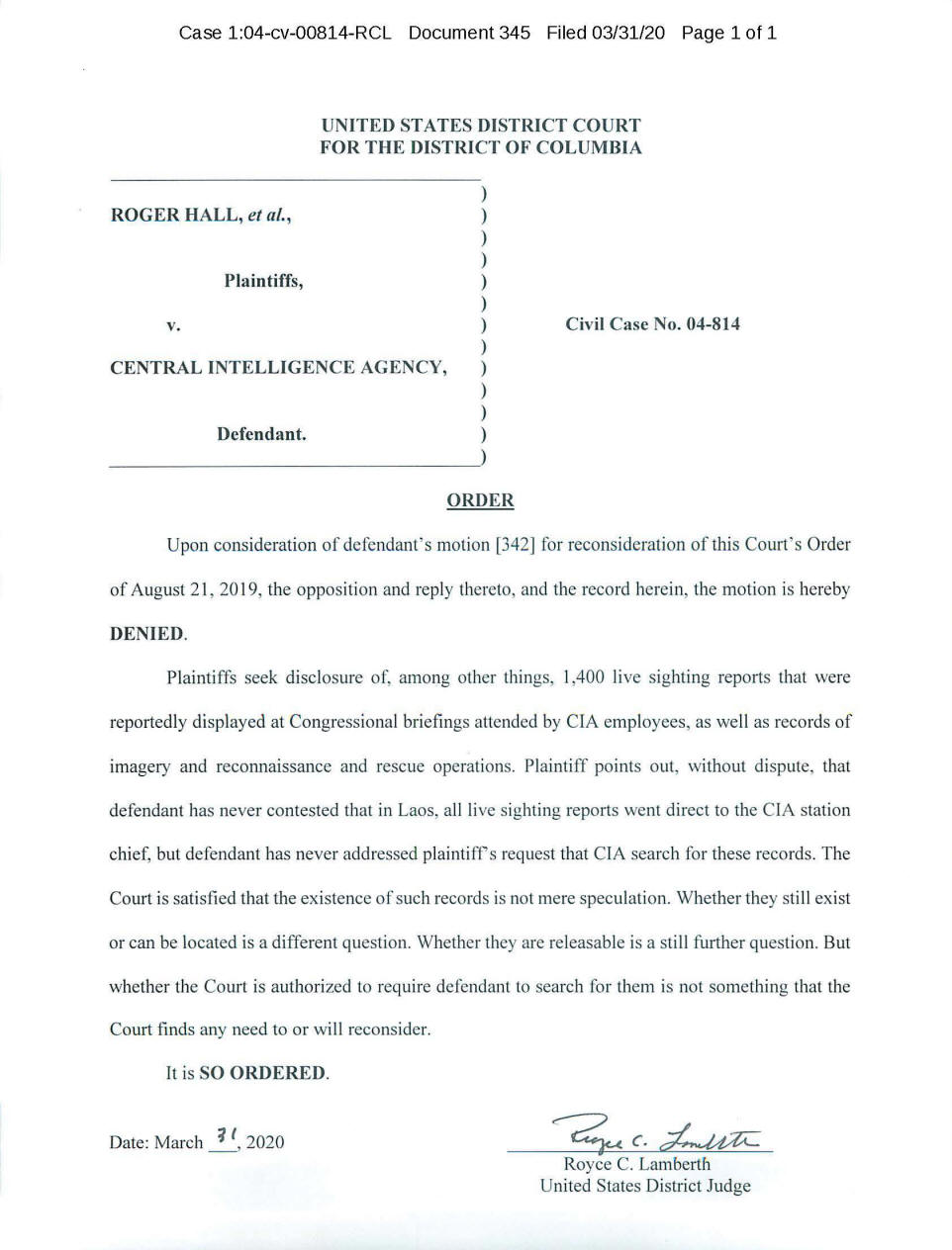 Congress in 1980, has been on a personal crusade to locate dozens of U.S.