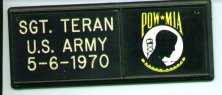 From: "K. Kister" <powmia@capital.net> Date: Tue, 7 Jan 2003 15:19:35 -0500 I have attached a pic of a small plastic tag bearing Teran's name. It has hung on my wall for many years and since his remains were returned I thought perhaps one of his family members might want it. If you have contact with any of them and they would like - I'd be happy to send it. Please advise. Keep up the great work - "we aren't done yet". Kevin V. Kister |