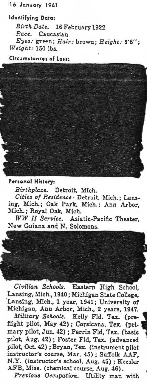 Further information has been compiled by the P.O.W. Network from the Hawaii POW/MIA