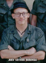 | Name: John Arthur Boronski Rank/Branch: E6/US Army Special Forces Unit: SOA (MACV-SOG) CCC, 5th Special Forces Group Date of Birth: 24 July 1944 (North Hampton MA) Home City of Record: Ware MA Date of Loss: 24 March 1970 Country of Loss: Cambodia Loss Coordinates: 142750N 1071816E (YB484003) Status (in 1973): Missing In Action Category: 3 Acft/Venicle/Ground: UH1H Refno: 1578 |