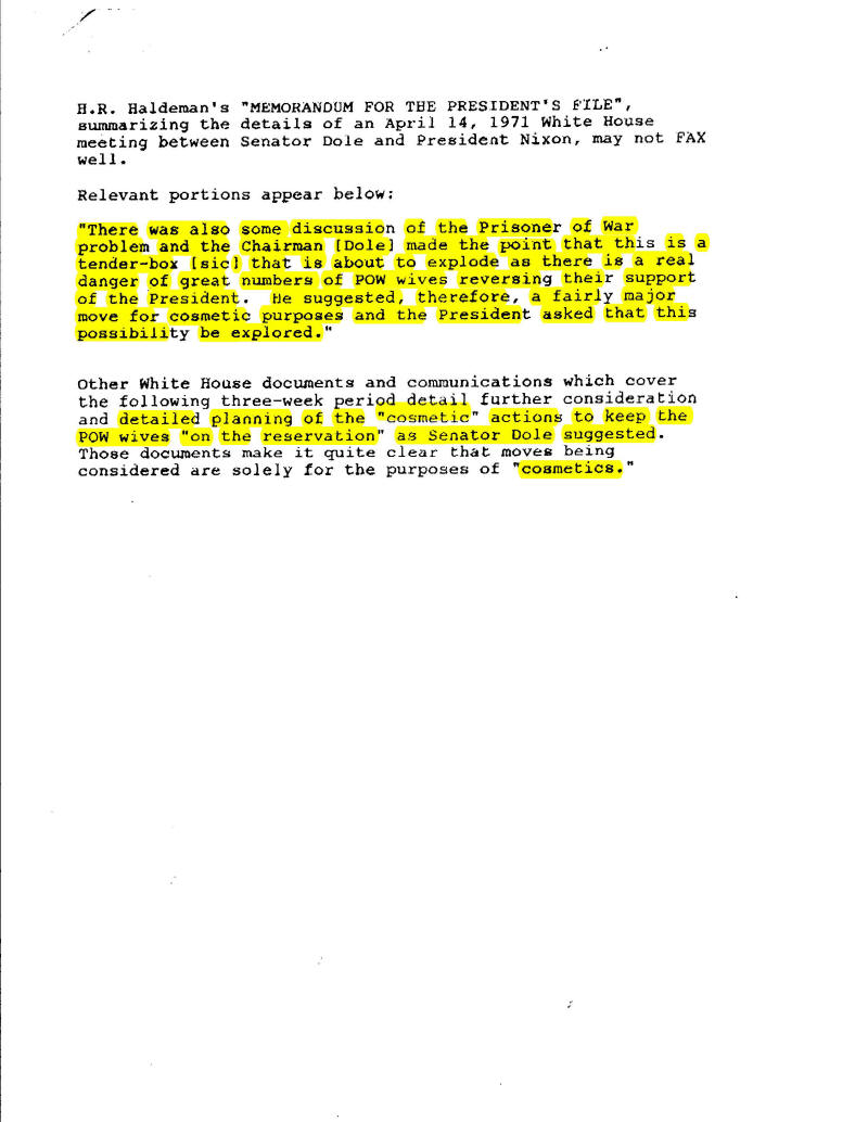 covered up facts about 600 American POWs and MIAs from the Vietnam War is