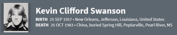 Name: Kevin Clifford Swanson