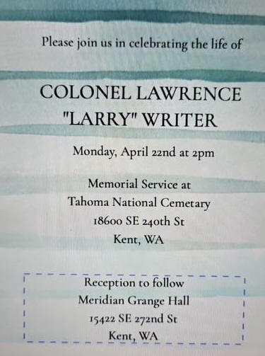 Larry Writer was born in Olympia, WA on 15 April 1940. He grew up in the